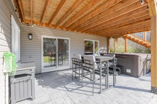Inclus : Four, réfrigérateur, lave-vaisselle, cellier, laveuse, sécheuse, pôles, rideaux (sauf ceux de la salle familiale au rez-de-jardin), luminaires, spa (vide -- pompe à réparer), supports à télévision, ensemble bistro 4 places (terrasse du rez-de-jardin), toile d'ombrage pour la terrasse du RDC, balayeuse centrale et accessoires, grillage pare-étincelles du coin feu extérieur.